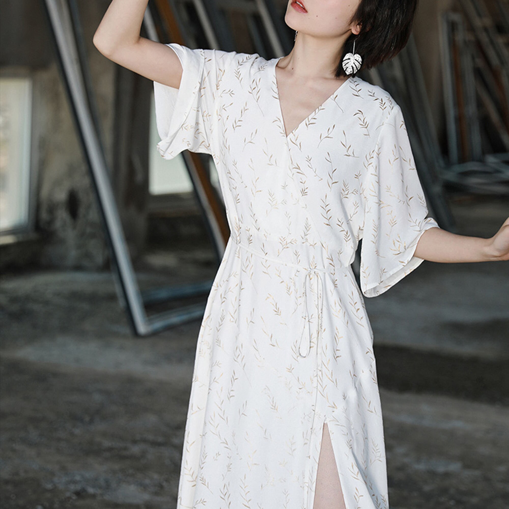 Weisses Maxi Kleid Mit Obi Stickerei Taille Band V Halsschlitz Etsy Schweiz